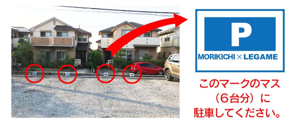 【ご了承のうえ、ご利用ください】・お隣のピザ専門店「LEGAME」さんと共有、先着順になります。・満車の場合はコインパーキング等をご利用ください。・近隣のご迷惑となります。路上駐車はおやめください。・駐車場内での事故、トラブルの責任は負いかねます。